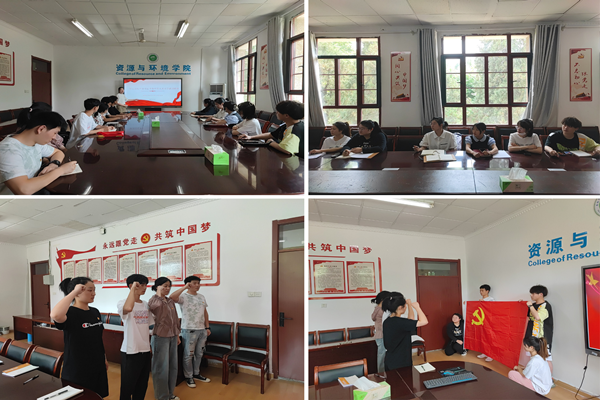 活动中,王丽萍分别就习近平总书记到中国人民大学考察调研的重点内容进行解读,带领同学们一起学习讲话精神。王丽萍强调,同学们要深入思考和体悟“新时代我们党培养什么样的人,怎样培养人,为谁培养人”这一基础性、方向性问题,动员同学们争做堪当民族复兴重任的时代新人,在青春的赛道上奋力奔跑,争取跑出当代青年的最好成绩,用实际行动践行“强国有我”的铮铮誓言。随后,同学们分别结合自身实际,交流了学习体会。大家一致认为,习近平总书记的重要讲话为青年成长发展指明了前进方向,令人倍感温暖、倍受鼓舞。最后,资源与环境学院新发展党员面对鲜红的党旗一起高举右手,进行庄严宣誓。“我志愿加入中国共产党……随时准备为党和人民牺牲一切,永不叛党。”铿锵恢宏的誓词,强烈震撼着在场的每一个人,一字一句,神圣而豪迈,体现了预备党员们对中国共产党的无限忠诚和为共产主义事业奋斗终身的决心。