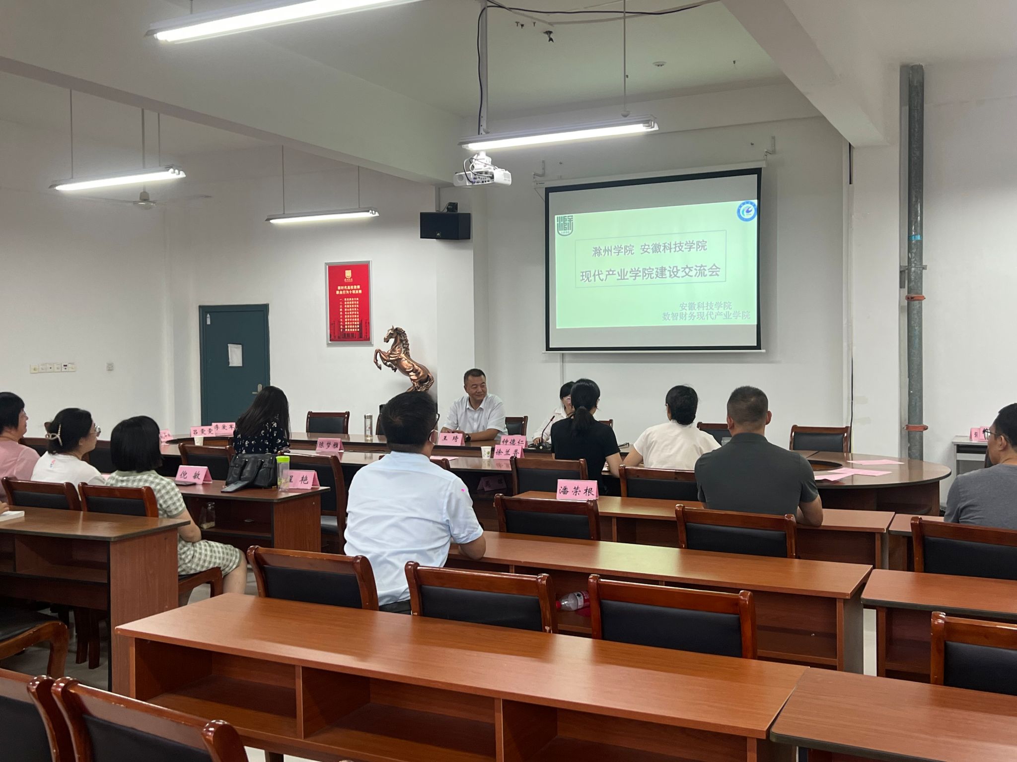 为加强数智财务现代产业学院建设,7月17日,财神在线登录官网数智财务现代产业学院负责人徐兰香率项目团队成员赴滁州学院经济与管理学院开展交流学习。滁州学院经济与管理学院副书记、院长王琦、财会系主任黎娜、财会系全体教师参加会议。会议由王琦主持。