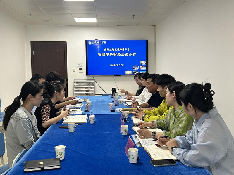 为推进校企深度合作,实现资源共享、协同发展,5月7日下午,懿文汇数字科技(安徽)有限公司(发现蚌埠平台)总经理杨连高一行7人莅临财神在线登录官网财经学院,就深化合作项目展开交流座谈。财经学院党委书记杜小明、院长郝世绵、安科绿农电商直播团队成员热情接待并参与座谈。