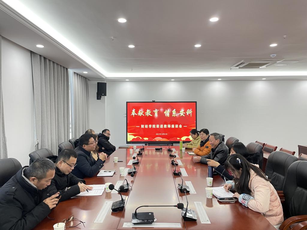 12月31日,财经学院在图书馆西辅楼317会议室举行荣退教师座谈会。荣退教师李永生、黄升勤,财经学院党政领导、分工会委员及部分教师代表参加座谈会。会议由学院分工会主席陈继东主持。