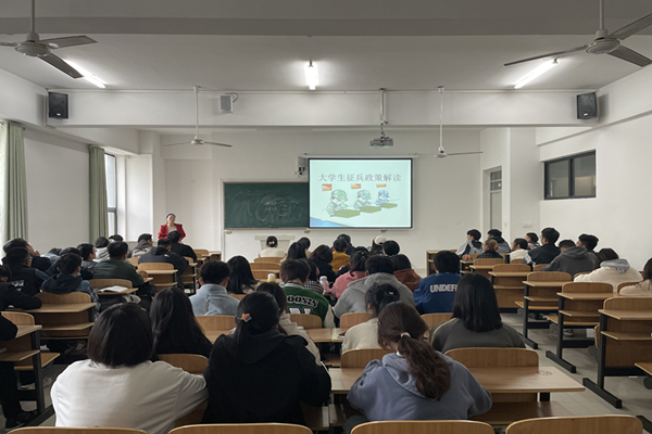 11月15日,财经学院在致知楼C404举办征兵政策宣传教育大会,学院有当兵意向的同学参加,宣传由副科级组织员王天云主讲。