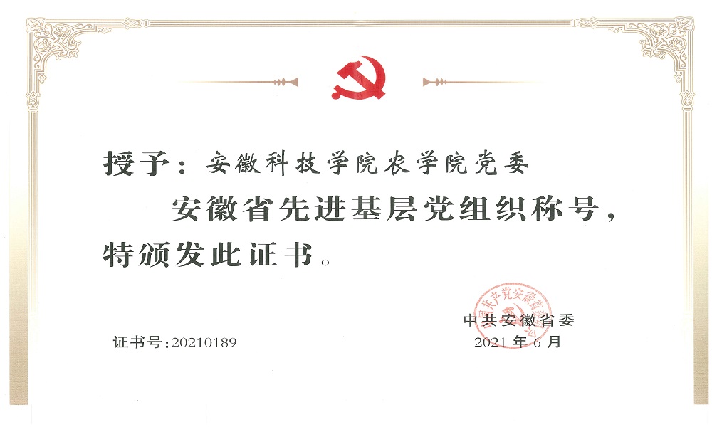 2021年农学院党委荣获安徽省先进基层党组织