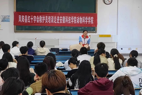 为进一步普及应急救护常识,增强安全防范意识,让学生了解急救自救知识,提高自救互救能力。5月15日下午,凤阳县红十字会专业救护师在新知楼B404为动物科学学院130多名学生集中开展红十字救护员专题培训,培训由学院团委书记李焱主持。