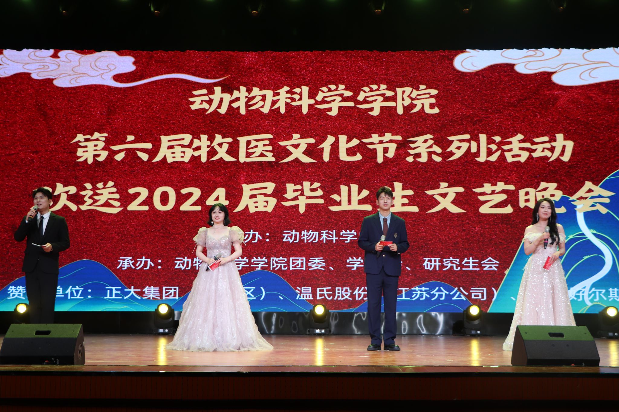 青春不散场,未来犹可期。6月2日晚,动物科学学院第六届牧医文化节系列活动之欢送2024届毕业生文艺晚会在大学生活动中心隆重举行,学院党委书记、副院长程斌,学院党委副书记、纪委书记汤帅,学院团委书记李焱和教师代表出席晚会,2024届全体毕业生、非毕业班学生代表共计400多名师生欢聚一堂,共同度过了难忘的夜晚。晚会得到正大集团安徽区公司、安徽好尔斯农业科技股份有限公司和温氏集团江苏分公司赞助支持。