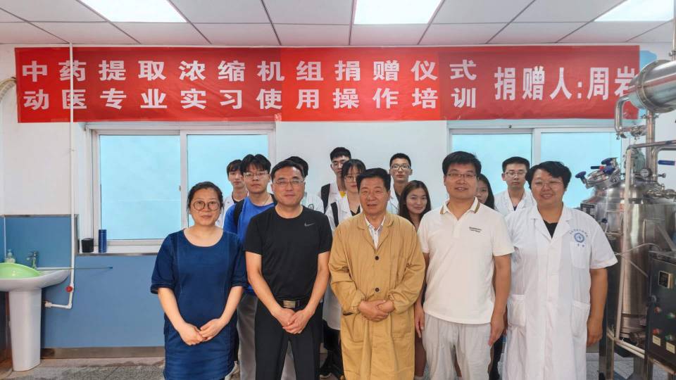 捐赠仪式结束后,周岩对动医专业学生开展使用操作培训,向同学们讲解了中药浓缩机组从开机、加水加药、加热到最后提取形成成品的全过程。