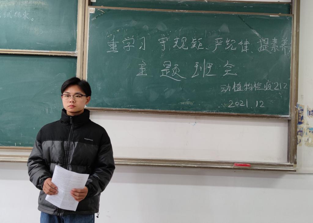 为引导广大学生进一步加强对学校管理制度、法律法规等知识的学习,强化规矩意识、养成法治思维和提升法治素养,12月17日-18日,动物科学学院各班级集中组织开展了以“重学习 守规矩 严纪律 提素养”为主题的法治素养提升专项行动。
