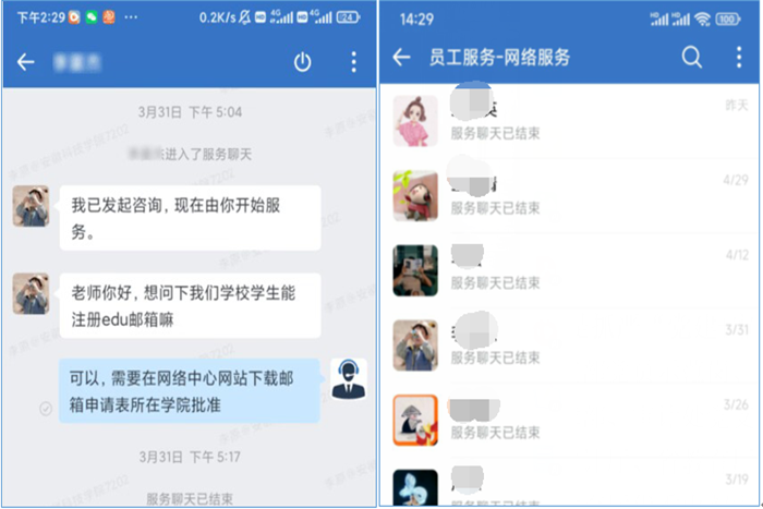 二、积极探索创新有效举措。运用信息化手段,将线上工作半径辐射到师生诉求的方方面面,实现“线上”“线下”协调配合、高效运转,全体党员转型网络客服和坐席人员,先后开通智能客服和企业微信员工服务,把服务师生的理念落到实处。校内师生和公众可通过扫描网页智能客服二维码咨询各类信息化服务相关问题,支部党员全员化身线上客服,参加系统自动接待分流,智能问答库和人工服务相结合,有效提高服务效率,月均咨询会话数80条左右。