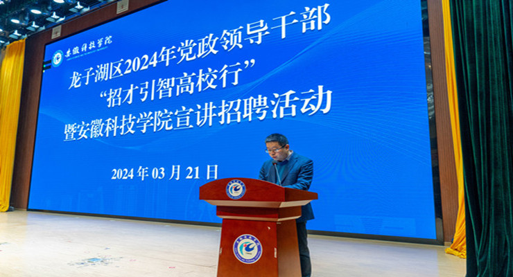 3月21日上午,蚌埠市龙子湖区“招才引智高校行”活动在龙湖校区信息中心二楼报告厅成功举办。龙子湖区委副书记、区长顾晓峰做城市宣介。校党委委员、副院长黄远友出席宣讲会并致辞,我校近300名学生聆听了宣讲会。