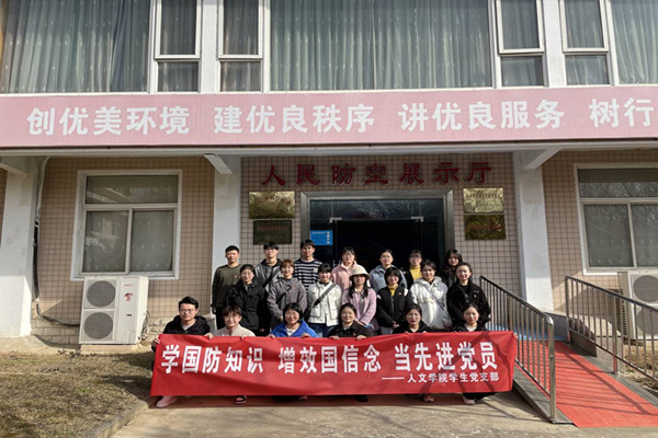3月2日下午,马克思主义学院概论教研室教工党支部和人文学院编辑出版与汉语言文学学生党支部结队,同赴蚌埠市人防办国防教育基地,开展“走出去”主题实践教育。