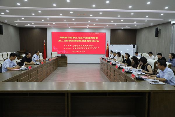 8月30日上午,由安徽省高校思政课教指委“原理”课分教指委主办、马克思主义学院承办的安徽省“马克思主义基本原理”课第二次磨课暨思政课教学研讨会在凤阳校区召开。来自教育部思政课教指委和安徽省高校思政课教指委的专家、第四届全国高校思政课教学展示活动的参赛教师齐聚一堂,共同聚焦思政课教学能力提升,开展深度磨课与教学研讨。
