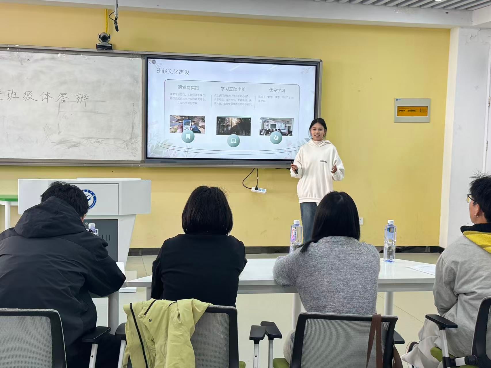 各班级围绕学风建设成果、学科竞赛成绩、文体特色活动等方面,对过去一学年工作进行PPT汇报和答辩。评委根据班级汇报情况,进行提问交流,为班级后续工作的扎实开展提出针对性意见和建议。