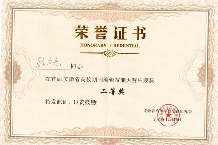 本次年会分为常务理事会议、研究会功能型党支部政治理论学习、研究会工作报告、专家学术讲座、首届编辑技能大赛和青年编辑论坛等多个议程。我校学报编辑部顾文亮一举斩获编辑技能大赛“二等奖”及2023年度“优秀编辑”。这两个奖项不仅体现了顾文亮个人的专业能力和学术造诣,也展示了我校学报编辑部在学术期刊领域的优势地位。