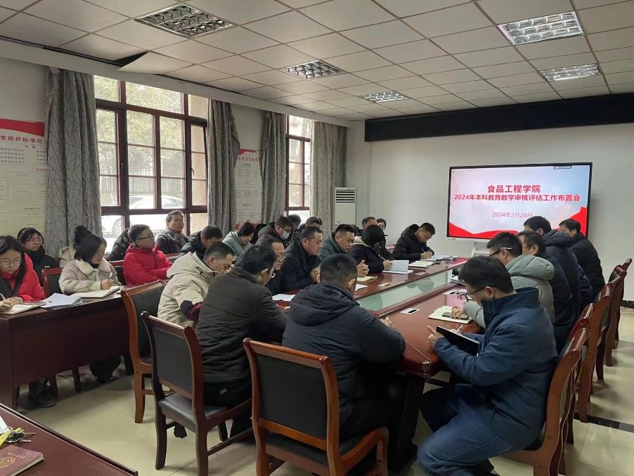 为深入贯彻落实学校关于本科教育教学审核评估及专业认证的文件精神和工作要求,保障学校本科教育教学审核评估和专业认证工作的顺利完成,2月28日下午,食品工程学院在学院会议室召开了本科教育教学审核评估及专业认证工作推进会议,学院党政领导及全体教师参加了本次会议,会议由学院党委书记付光玺主持。