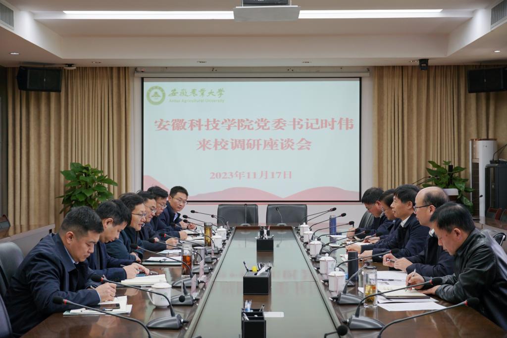 11月17日上午,党委书记时伟率党委委员、副院长王孝义及党委(校长)办公室、科研处、教务处负责同志,赴安徽农业大学考察交流学科专业调整与现代产业学院建设、新农村发展研究院管理与运行机制、科研管理与横向项目激励机制、科研人员赋权改革等工作,受到该校党委书记张庆亮、党委常委、副校长操海群及相关对口部门的热情接待。