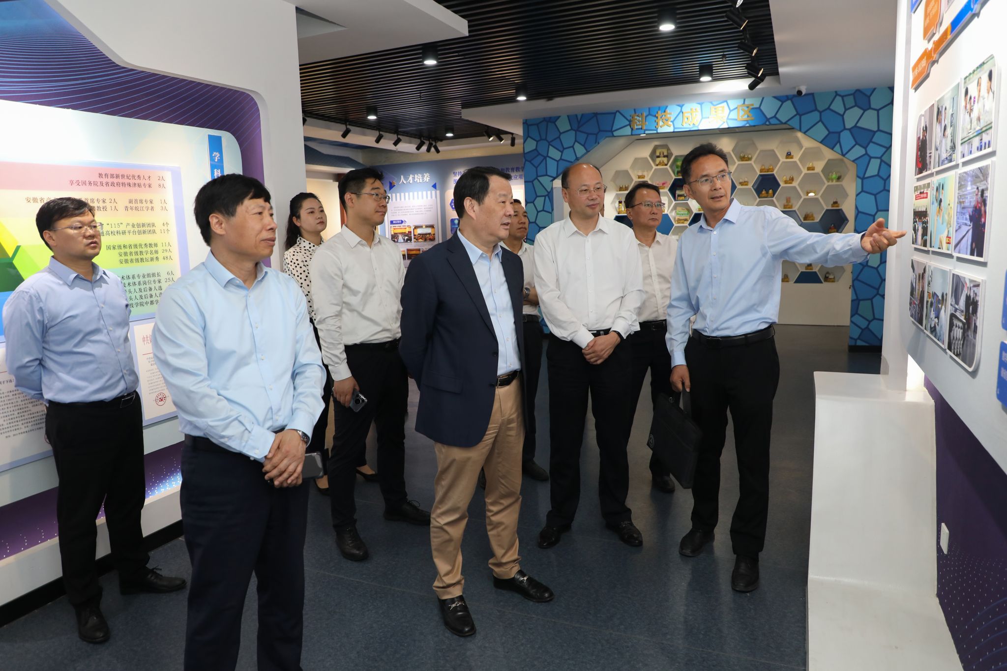 座谈会前,彭寿一行来到校史馆和特性玻璃与硅基绿色能源材料协同创新中心,详细了解学校学科建设、专业设置、人才培养和“产学研用”融合发展等方面情况。(特约通讯员:王钊,摄影:陈宝,作者:韩少华,审核:卢星辰)