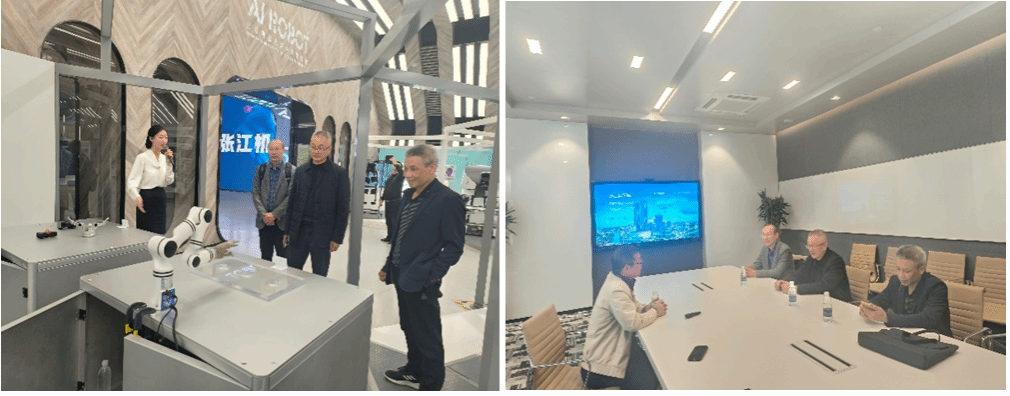 10月24日下午,王振其等一行来到上海浦东康桥(集团)有限公司,考察了张江机器人谷,了解了医疗机器人、人形机器人、工业机器人等领域的新型研发成果。在与企业交流座谈会上,公司负责人介绍了公司基本情况、园区发展规划和高校毕业生就业情况。王振其向企业介绍了学校基本情况、专业设置和2026年毕业生信息等。双方就当前人工智能、机器人发展状况和企业对人才需求进行了广泛交流。