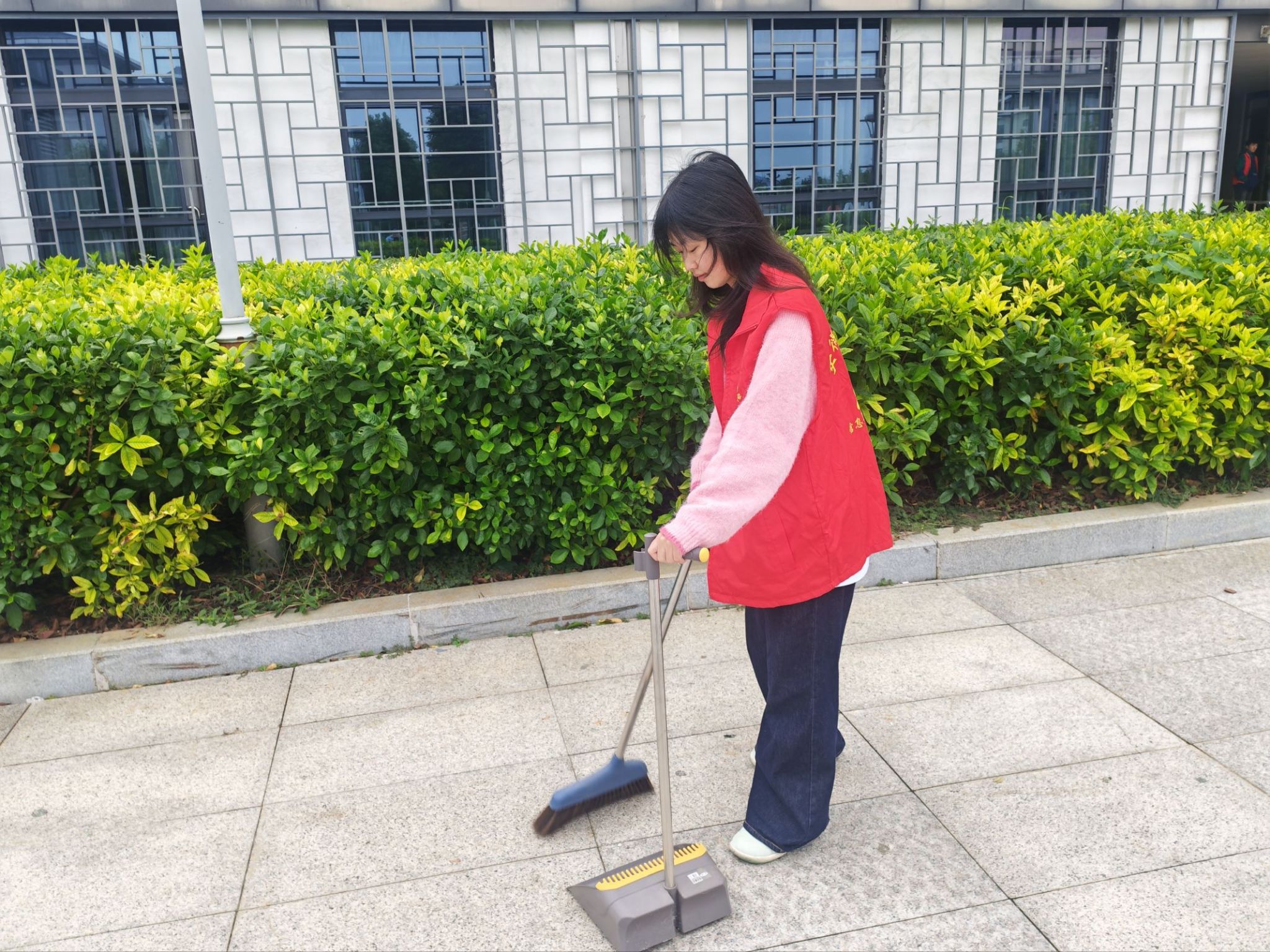 活动中,志愿者们分为多个小组,携带扫帚、簸箕、垃圾袋等工具,对教学楼周边、绿化带、校园小径等区域的垃圾展开“拉网式”清理。在教学楼拐角处,志愿者弯腰捡拾隐藏的零食袋、塑料瓶;在绿化带里,大家仔细拔除杂草,同时将灌木丛中的纸屑、枯枝落叶逐一收纳进垃圾袋;在校园小径上,志愿者们认真清扫地面塑料袋、果皮等垃圾,确保每一处区域无垃圾残留。志愿者们不惧脏累,专注于每一个垃圾死角。他们的身影穿梭在校园各个角落,经过数小时的努力,共清理出满满数袋垃圾,校园环境焕然一新。