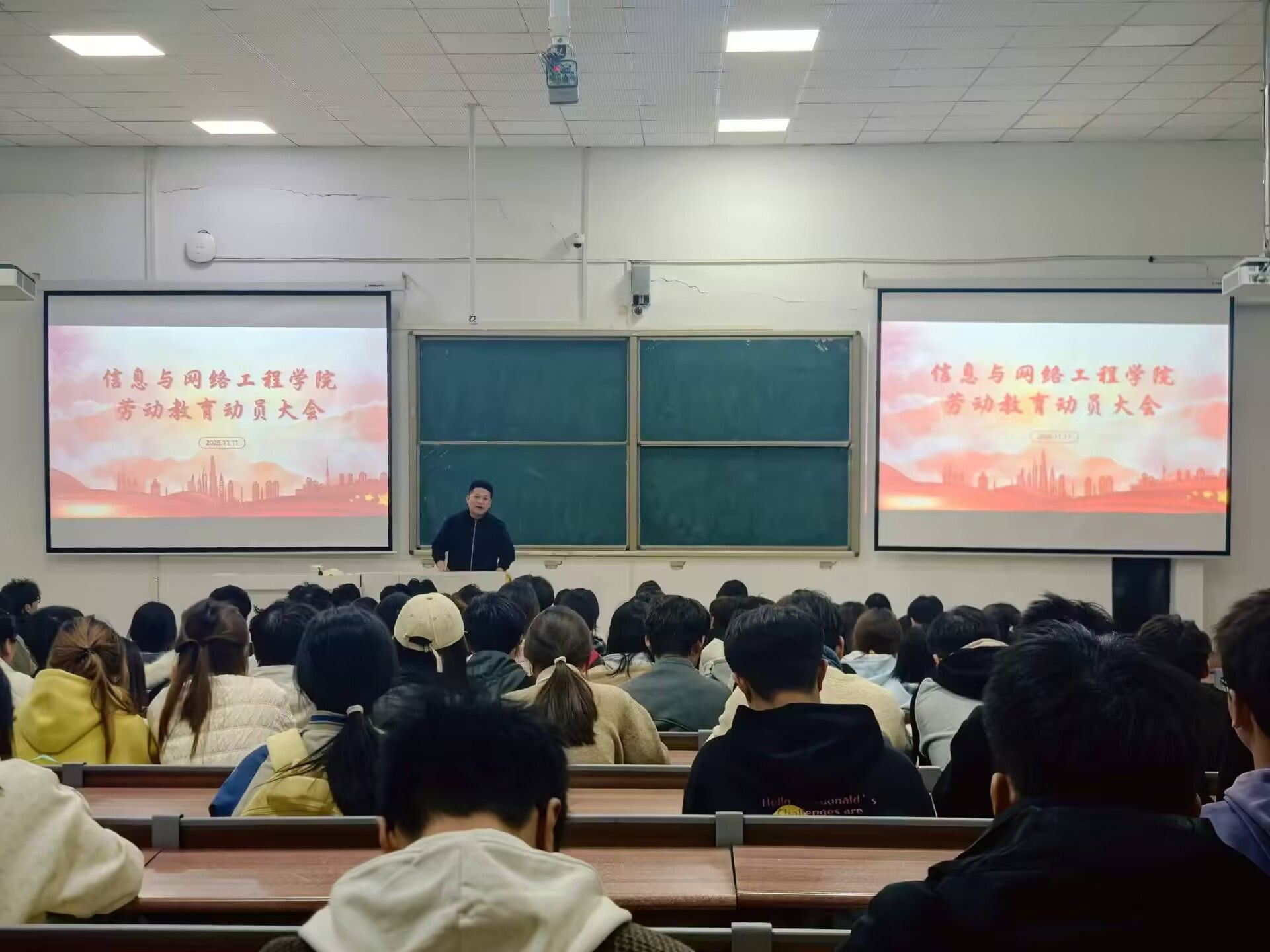 为推进劳动教育落地生根,引导学生树立正确劳动观、养成良好劳动习惯。10月11日晚,信息与网络工程学院在致知楼A111召开2024-2025学年第一学期劳动教育动员大会,劳动教育负责老师崔北坤,2022级-2025级各班班委及学生会成员参加本次会议,本次会议由崔北坤主持。