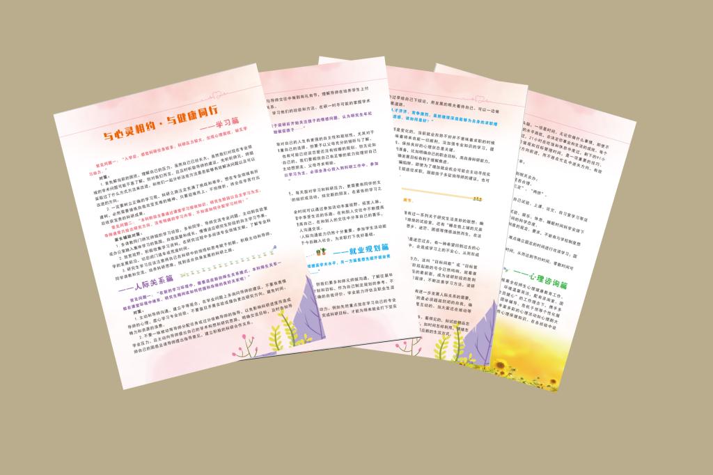 编制一份手册,让心理健康知识成为手边书。通过大量的意见调查与意向收集,财神在线登录官网研究生会广泛与研究生同学沟通交流,梳理总结了研究生普遍关心关注的心理健康方面的问题,编制了学习篇、人际关系篇、就业规划篇、自我调节篇、心理咨询篇5个篇章的《研究生心理健康宣传手册》,并发放至全校400余名研究生,让心理健康常识真正成为广大研究生“挥手即来”的手边书,时刻提供帮助和参考。