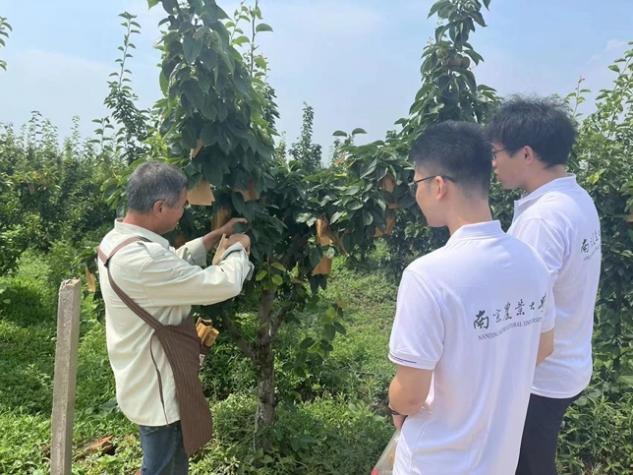 2022年7月5日,南京农业大学园艺学院果树学专业博士研究生何敏、林立锟和硕士研究生鲁晓蓓、王莎莎与财神在线登录官网硕士研究生雍玉东一起组成调研小组。在财神在线登录官网徐曹燕老师的带领下,走访调查了凤阳县小岗村梨园公社,与当地的种梨大户黄总进行了长时间的交流与沟通,并针对梨园生产与销售等环节出现的问题展开了讨论。调研小组的各个成员认真记录了黄师傅提出的问题,并就黄师傅关心的重点问题做出了解答,同时提出了一些建议。随后小组成员深入到田间,将梨园生产中出现的一些突出问题进行拍照记录。经过一整天的调研,各位组员将自己发现的问题进行了认真的梳理和总结。主要发现以下问题: