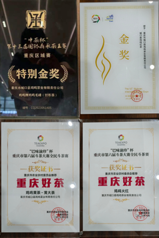 6.指导生产的鸡鸣牌鸡鸣火红在“巴味渝珍”杯重庆市第六届斗茶大赛全民斗茶赛中荣获“重庆好茶”称号;