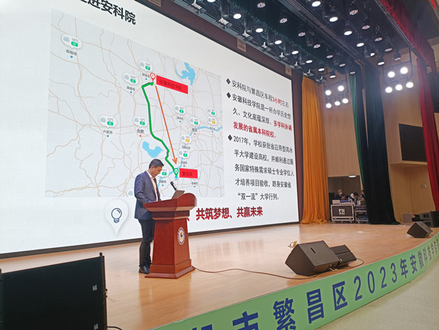 4月8日上午,芜湖市繁昌区2023年高校宣讲招聘活动在我校龙湖校区举办。校党委委员、副院长李升和出席活动并致辞,党委委员、组织部部长钱锐参加活动,活动由繁昌区委常委、副区长张东主持。