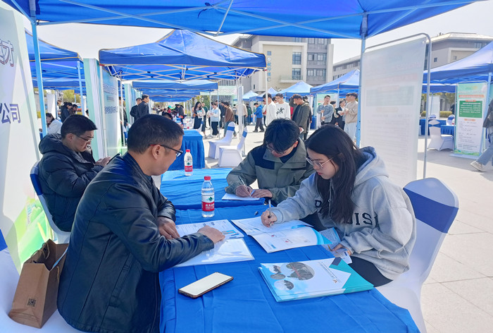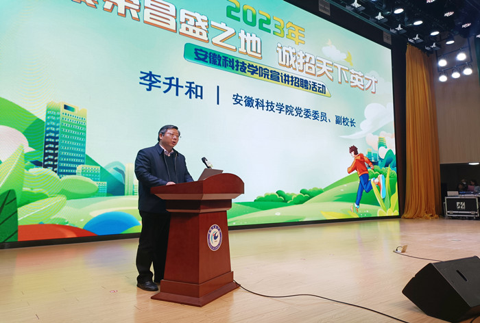 李升和在致辞中,对芜湖市繁昌区企业来校招贤纳才表示热烈欢迎。他简要介绍了学校的办学历史和成就。他指出,繁昌区位优势突出,产业链条舒展,双方在战略合作中互惠共赢,共建成果转化中心和实习实训基地,成果丰硕。芜湖市作为合肥、南京两大都市圈的“双核城市”,不仅是我校在皖南地区的重要优质生源基地,也是我校毕业生省内就业的核心流向地之一。近年来,学校与芜湖市的校地、校企沟通联系不断加强,交流合作持续深化,形成很大合作优势。他希望,我校毕业生珍惜良机,积极就业创业,用青春书写无愧于时代的华彩篇章。