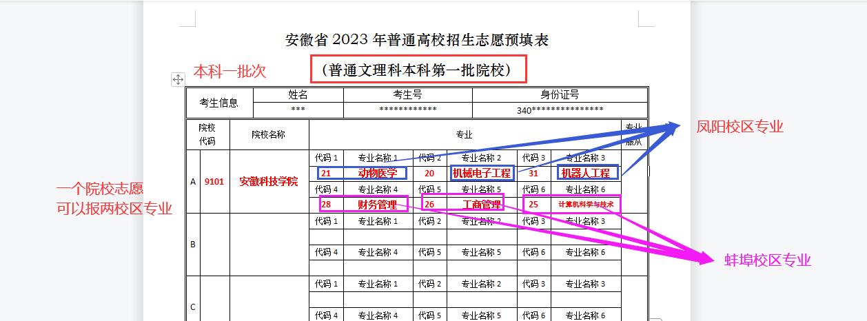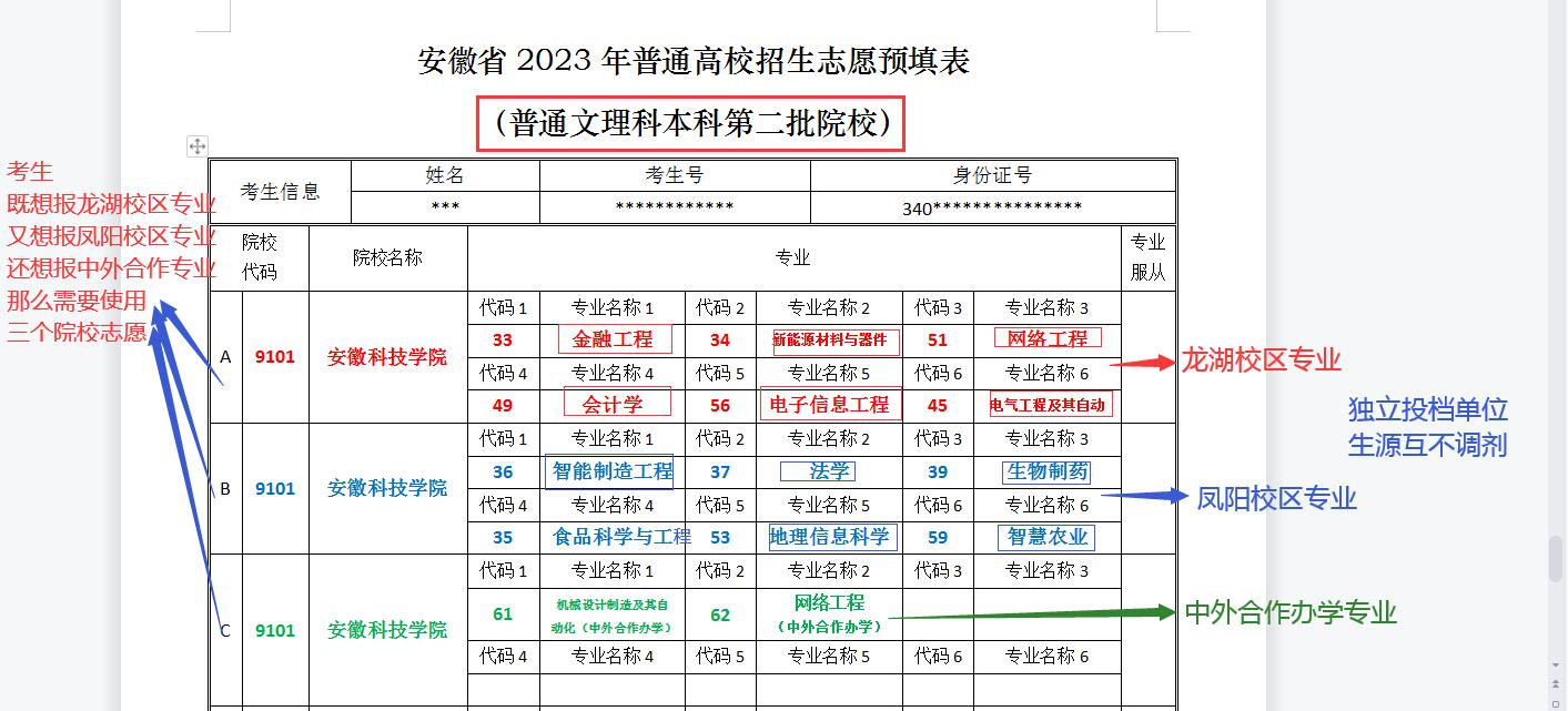 我校2023年安徽省普通高校招生,安徽省招生代码为9101。有三个录取批次,分别是提前批次、本一批次、本二批次。为方便广大考生填报,现将安徽省志愿填报注意事项说明如下。安徽省外考生请关注各省份教育考试官方机构提供的志愿报考指南参考。